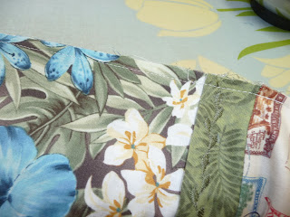 Now.... turn inside out. I have anchored the edge of the cuff and the accent piece with lots of pins hoping they'll match when sewn again.